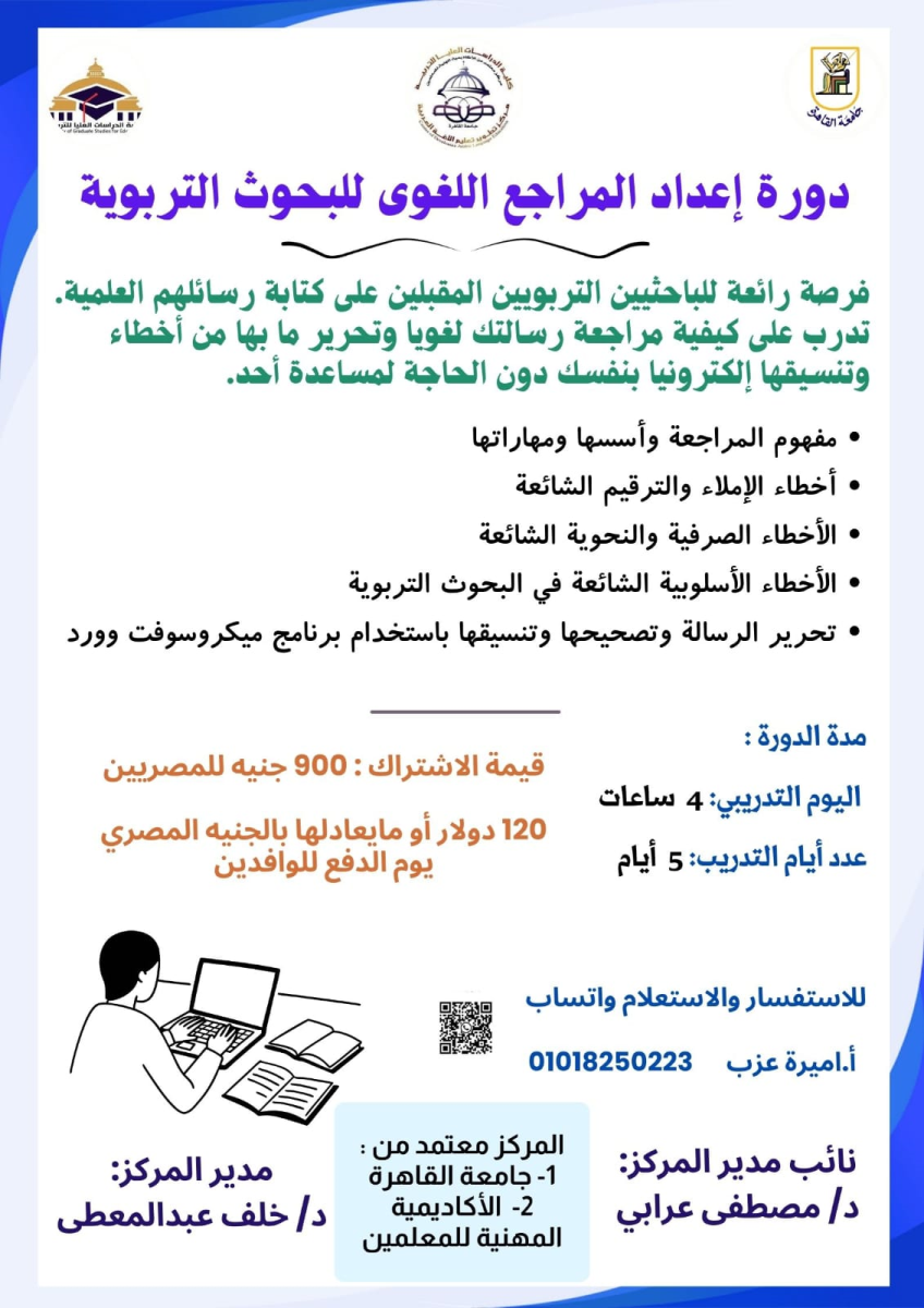 · تقديم خدمات لغوية وفنية أكاديمية في التأليف والمراجعة اللغوية للبحوث التربوية والمناهج التعليمية.